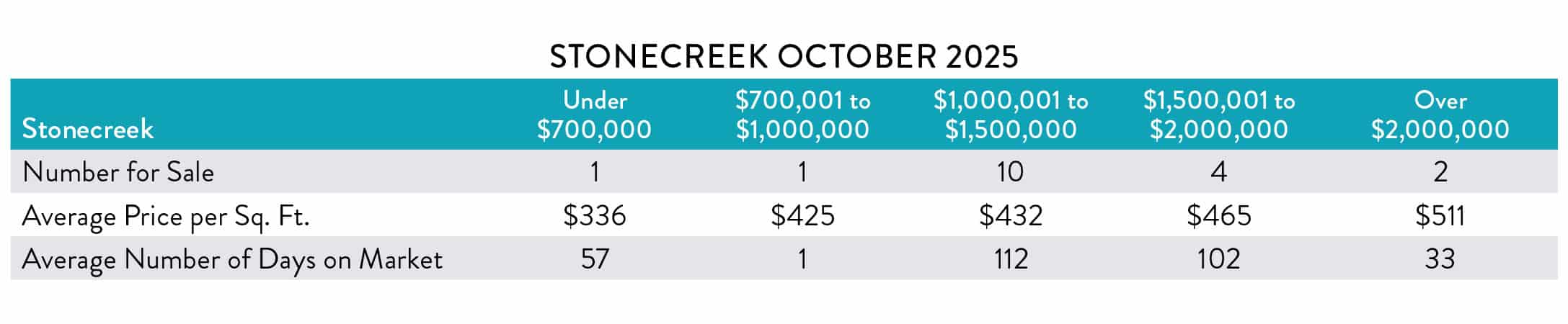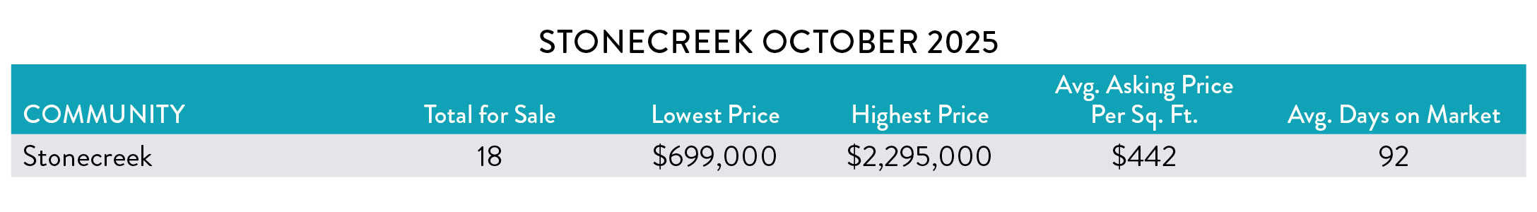 Stonecreek is the sister community to Riverstone, about a mile up Logan Blvd. and was built by the same developer, GL Homes. Both communities offer social, vacation-inspired lifestyles with extensive amenities & A-rated schools. Stonecreek is a bit newer and home prices in this community tend to be a bit higher than Riverstone. Here’s a look at the MLS market in Stonecreek as of November 6, 2025:
