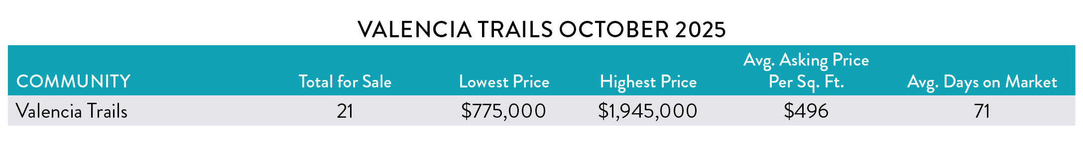 Valencia Trails is the active, adult community about 5 miles east on Immokalee Road from Riverstone and was built by the same developer, GL Homes. As a 55+ lifestyle community, Valencia Trails offers even more amenities than Riverstone and Stonecreek including a 43,00 SF clubhouse, that includes a theater for live performances, a spa, a restaurant and pool bar. The fitness facilities and calendar of events are extensive. Here’s a look at the MLS market in Valencia Trails as of November 6, 2025: